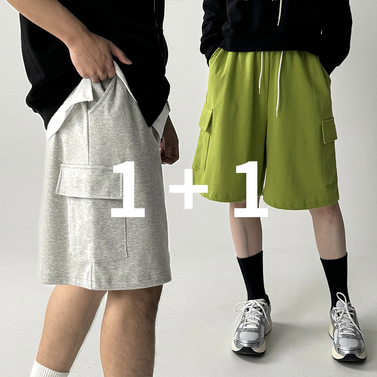 [당일출고] 1+1 남녀 공용 카고 버뮤다 팬츠 회색 흰색 반바지