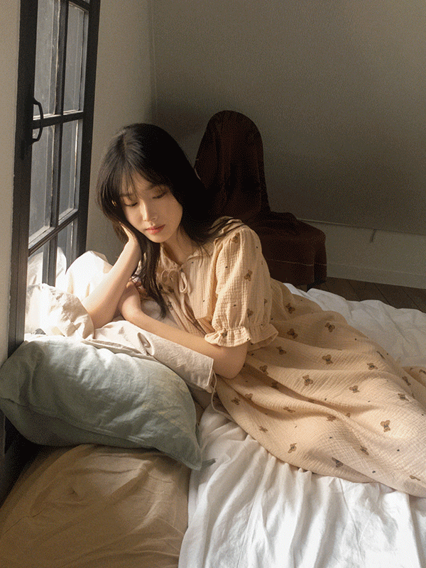 [뉴컬러추가!/5천장 돌파/☁코튼] J'eu 로맨틱 맨디 베어 요루면 반팔 파자마 잠옷 세트 3color