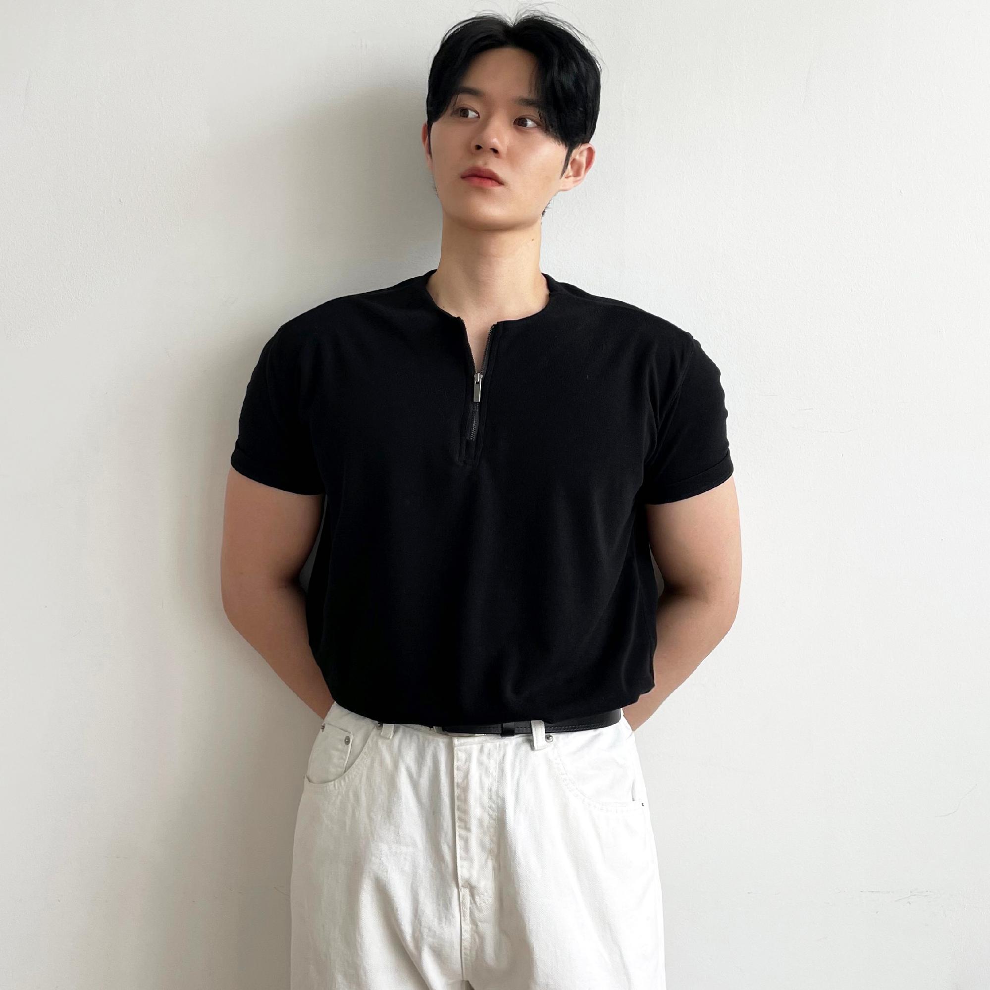 [남자친구 선물] 머슬핏지퍼반팔 머슬핏반팔 머슬핏반팔티셔츠 남자반팔 머슬핏반팔니트 남자여름니트 남친옷 남자옷 남친반팔