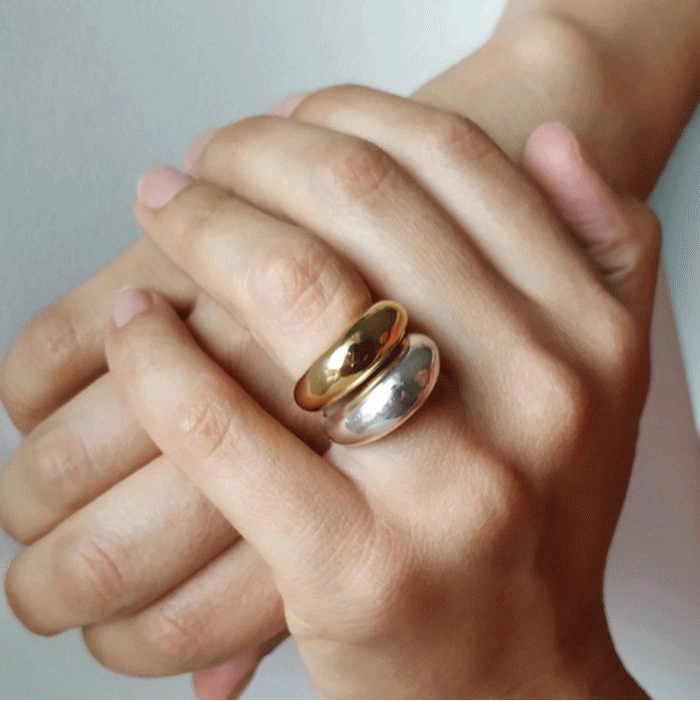 18K 골드 실버 써지컬스틸 볼드 볼륨 고마루 청키반지 반지 쌍가락지