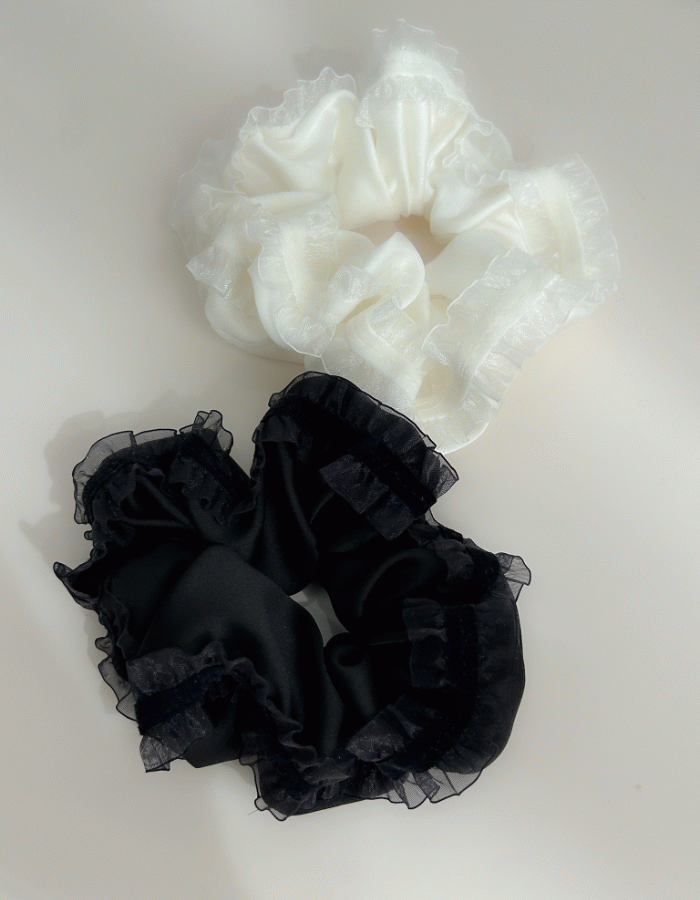 쉬폰 블랙 화이트 레이스 곱창끈 헤어끈 스크런치 헤어슈슈
