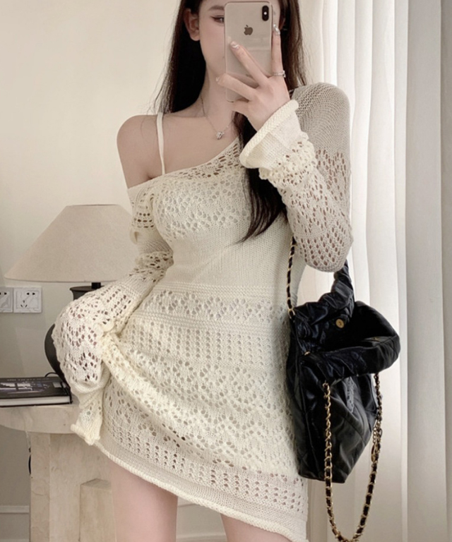 2사이즈 엘프니트원피스 (비치원피스 그물 휴가룩 휴양지 비키니커버업)