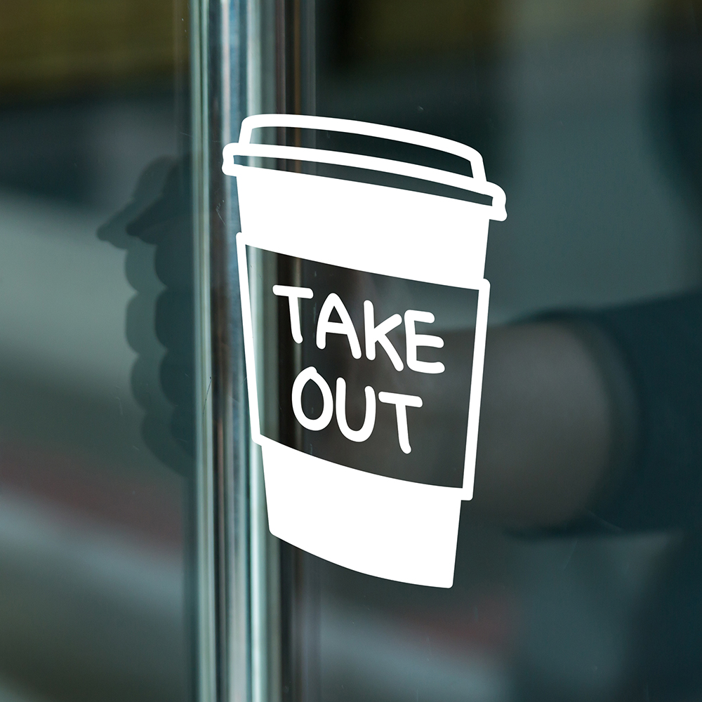 컵그림 take out 카페 포장표시 인테리어 스티커
