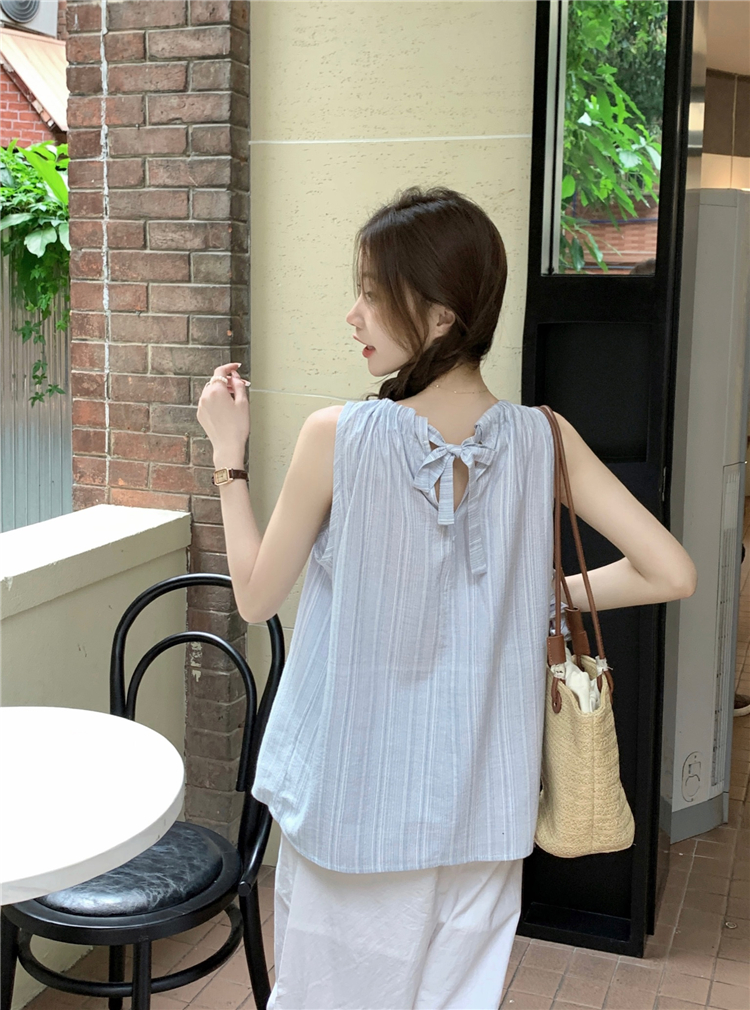 [당일출고] 고기 오버핏 여름 나시블라우스 루즈핏 빅사이즈 하늘색 셔링 스트라이프 민소매 블라우스