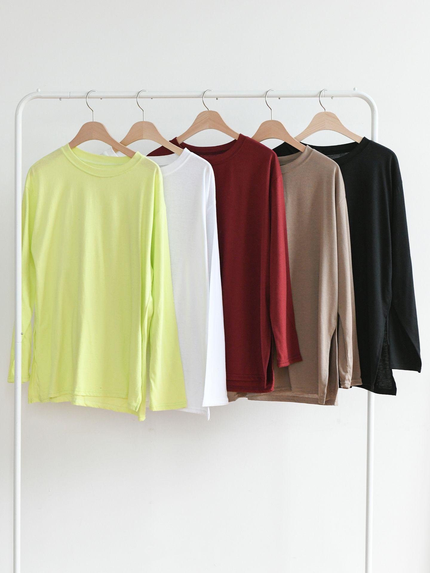기본 얇은 무지 옆트임 긴팔 면 티셔츠 봄 가을 간절기 장마철 55 66사이즈 77사이즈