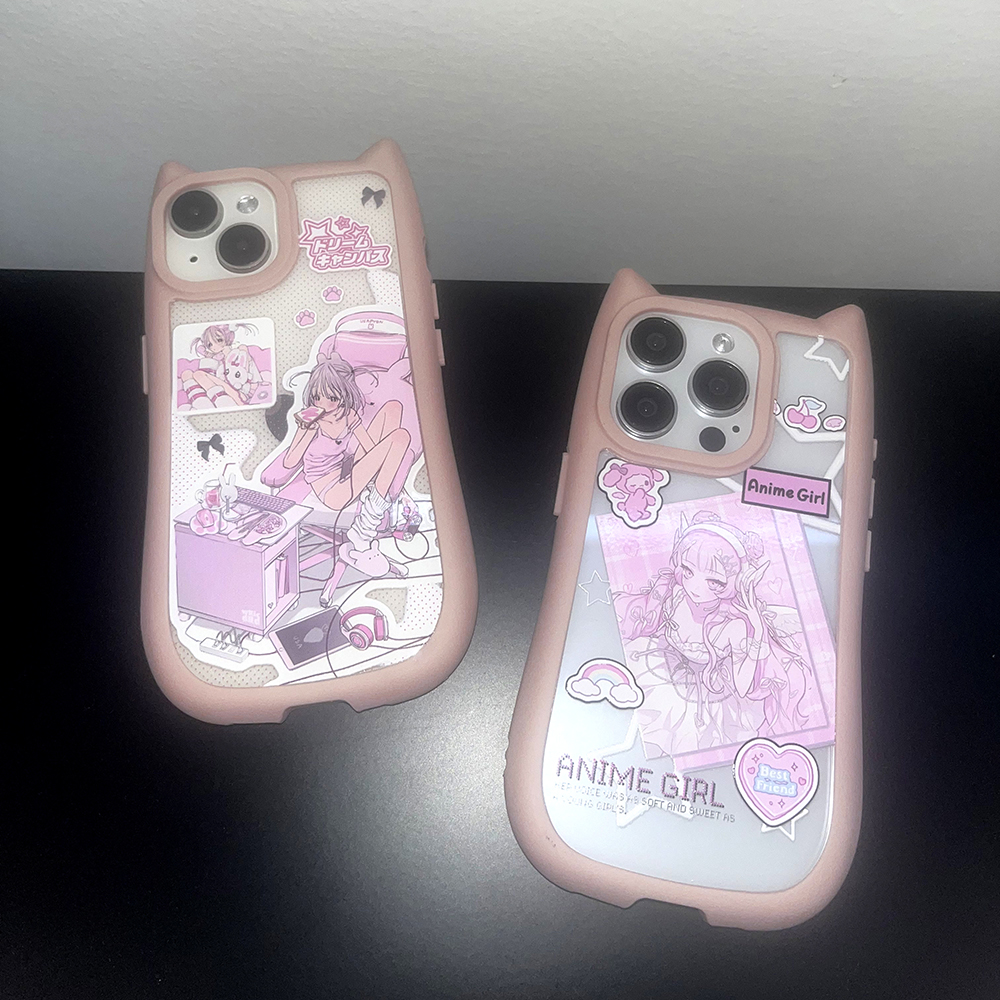 [당일출고] 애니 고양이 핑크 실리콘 테두리 아이폰케이스