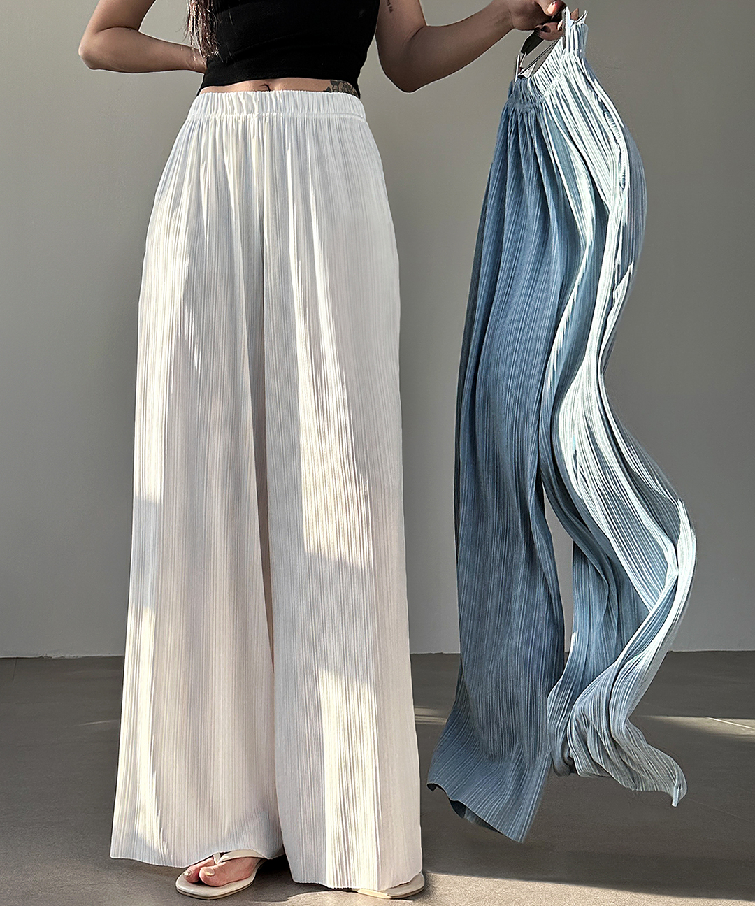 당일출고🚀[시원해❄/촤르르핏] 하이웨스트 쿨링 플리츠 롱 와이드 팬츠 3color