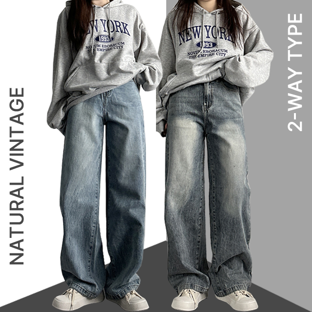 [조거스트링/기장선택] 2way 주름워싱 청바지 와이드 데님팬츠 -4color