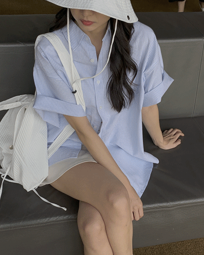 라이즈 스트라이프 옥스포드 반팔 셔츠