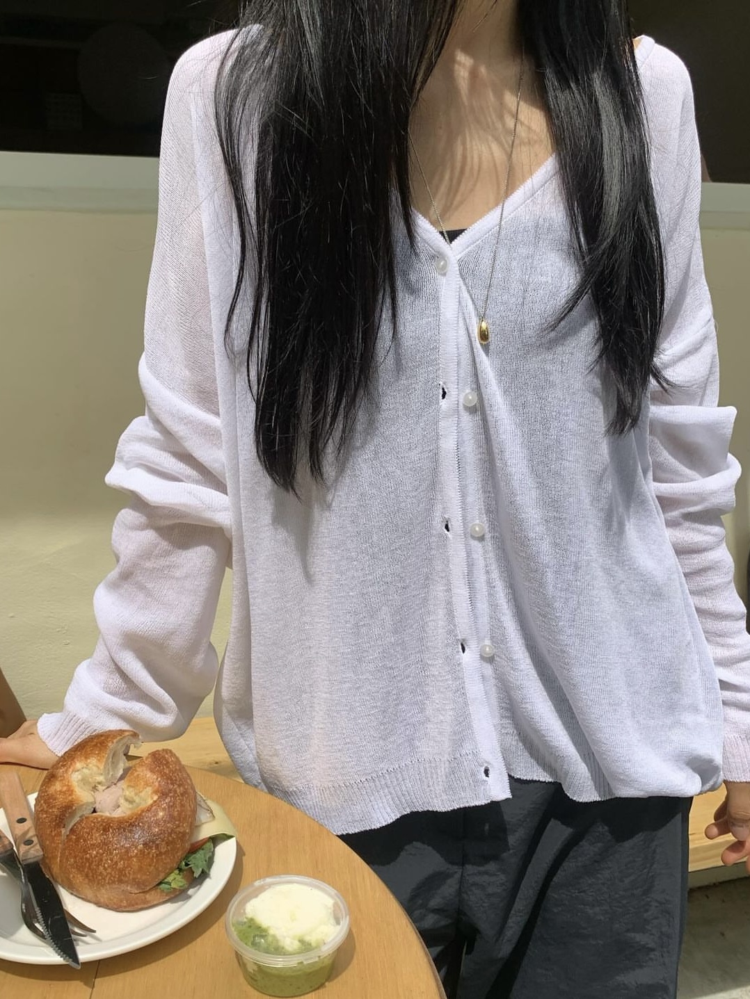 웰로우 클락브이넥니트가디건 여름가디건 얇은가디건