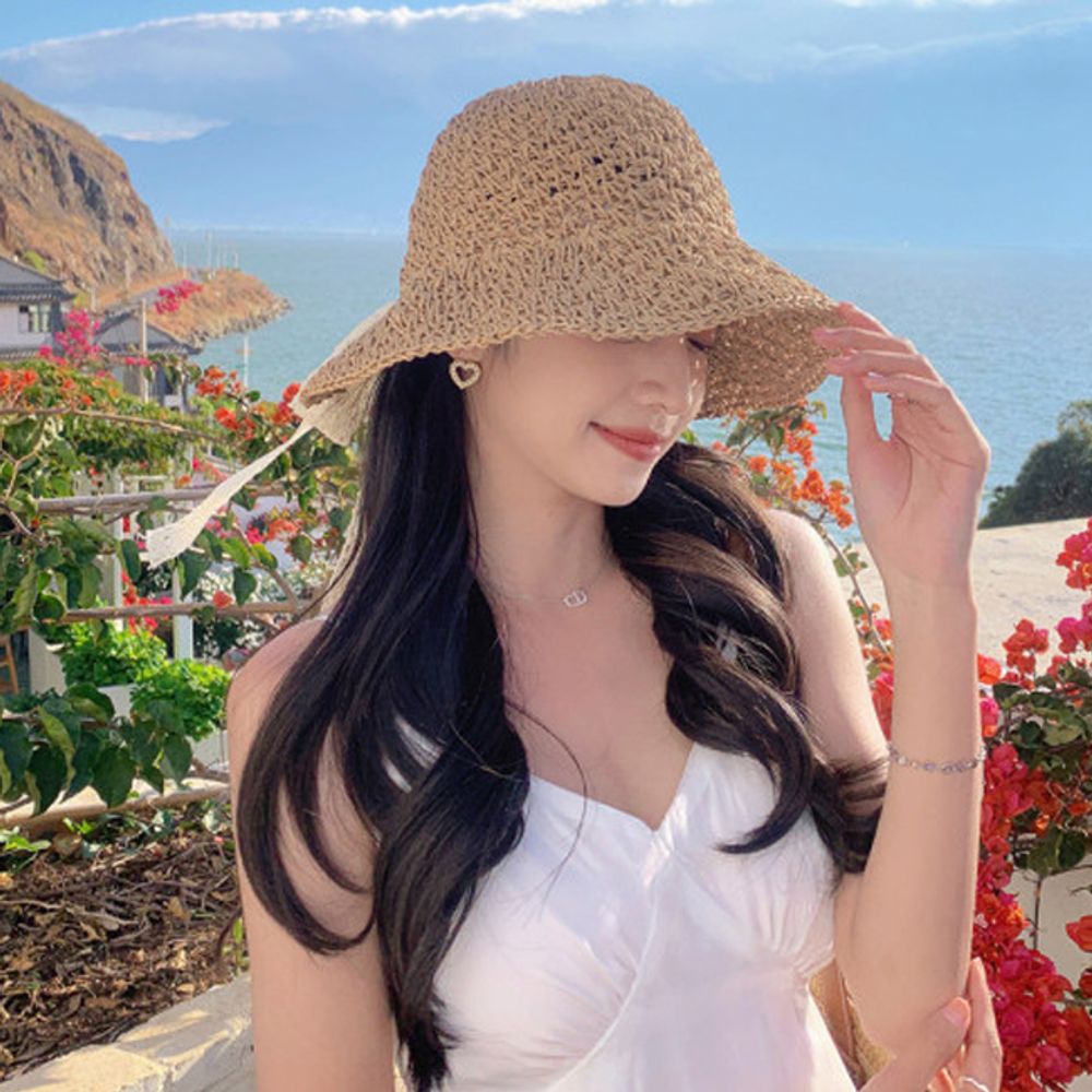 여름모자 여성바캉스모자 비치햇 여자 레이스 리본 바캉스 모자 1P 여름 비치 라피아햇 비치모자 바캉스모자