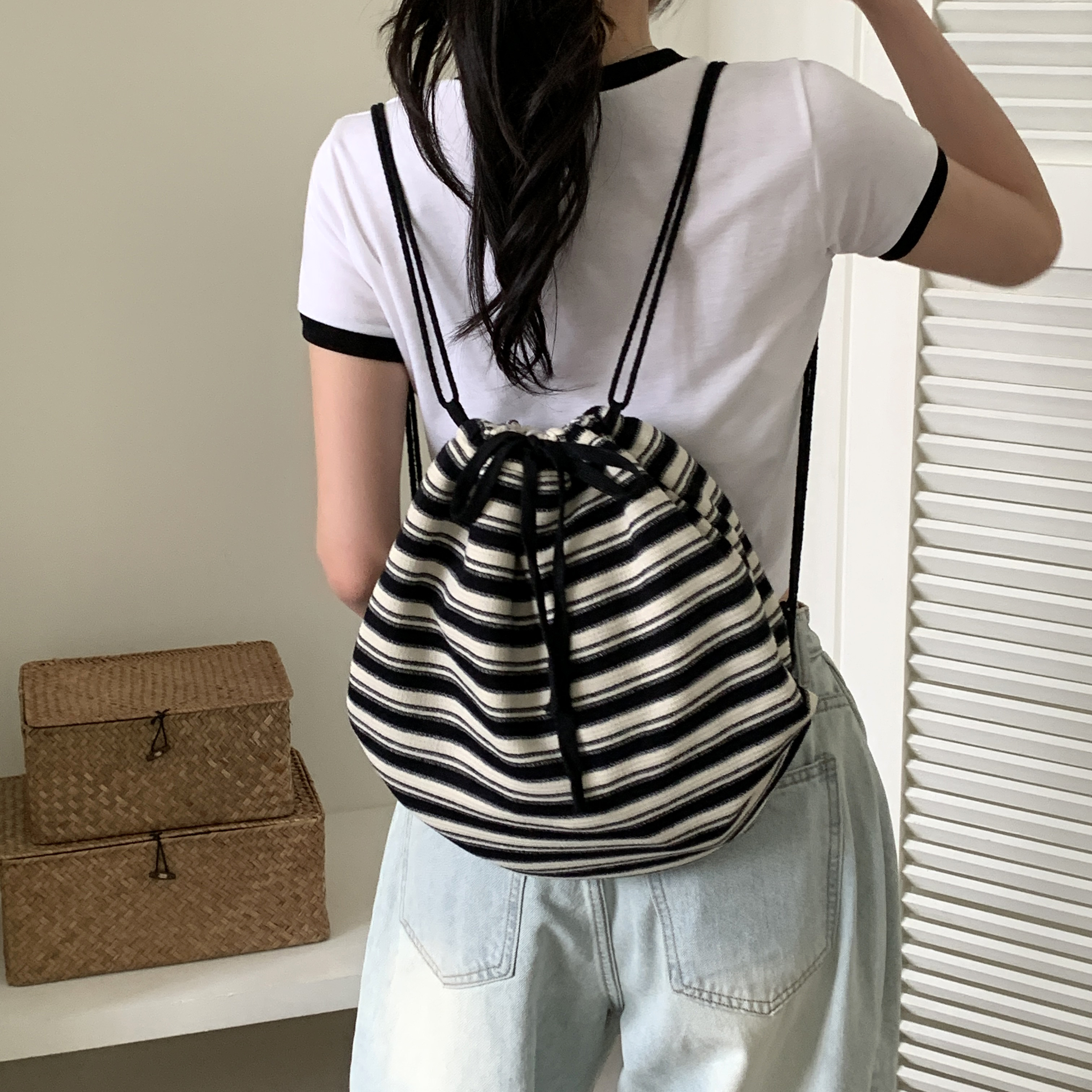 [무배/당일출고] 피노 스트라이프 짐색 스트링백 머디스 크로스백 복조리백 백팩 힙한 단가라 캔버스 가방