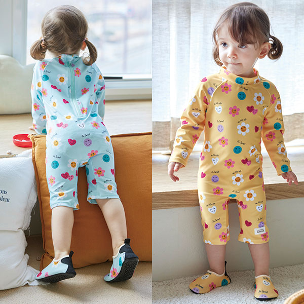 [래쉬가드] 아기 스마일 우주복 래쉬가드 유아 수영복 여아 레쉬가드 일체형 전신수트(1세~)