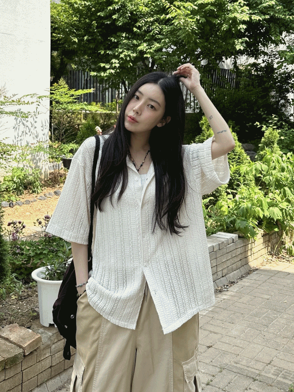 rose half shirts / 로제 크로쉐 반팔 셔츠