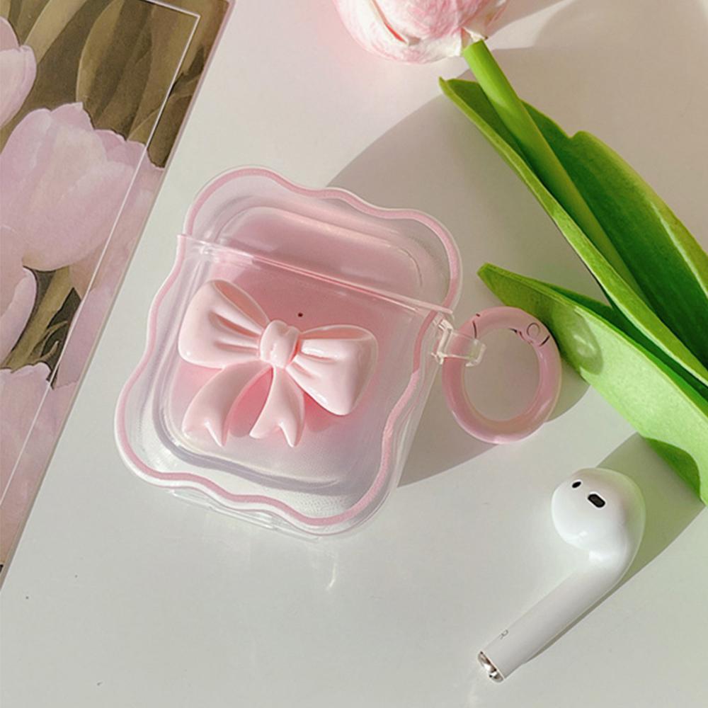 에어팟 그라데이션 핑크 리본 파츠 물결 테두리 투명 키링 실리콘 케이스 1 2 3 세대 프로