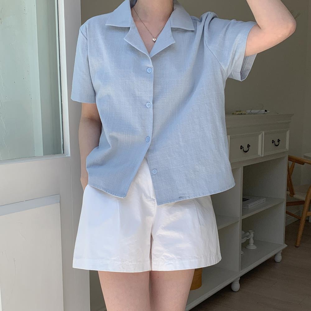여자 여름 데일리 스탠다드팃 카라넥 코튼 반팔 셔츠