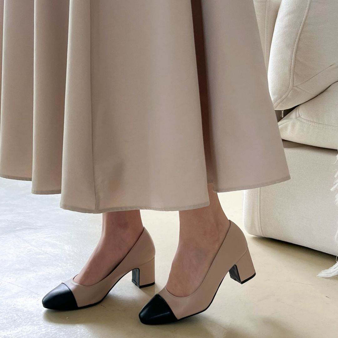 가죽펌프스 투톤 배색 여성 펌프스구두