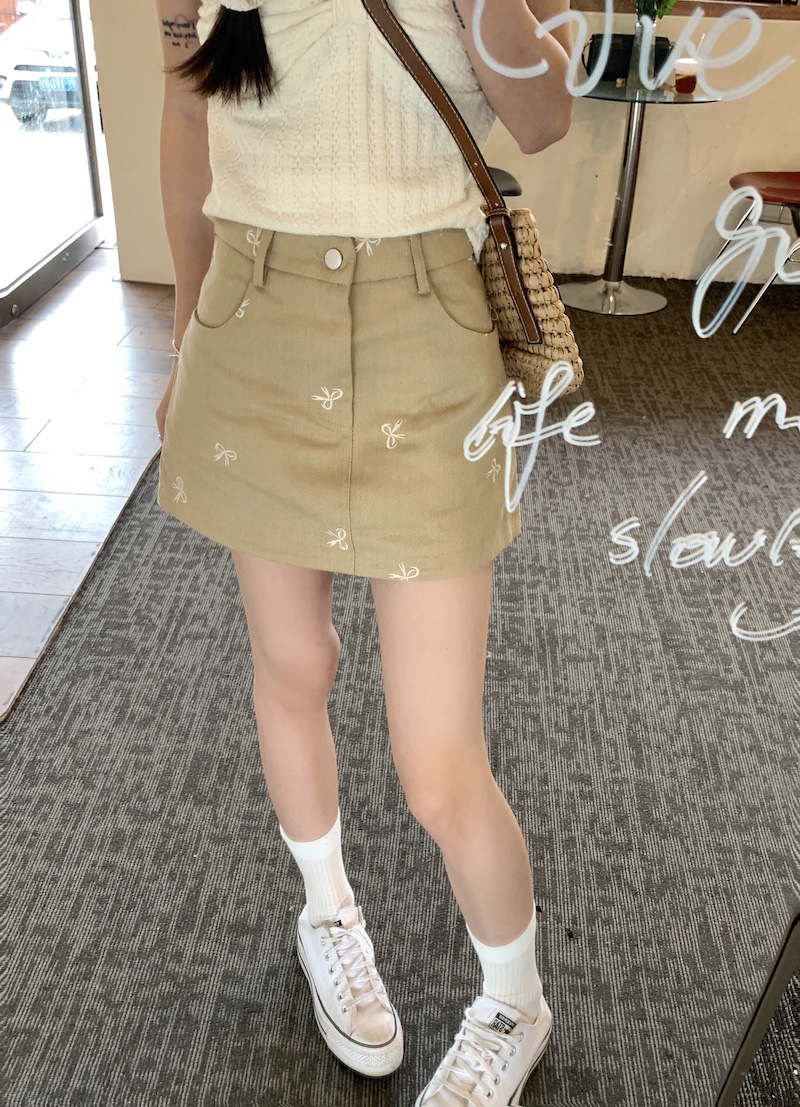 가끔 a라인 미니스커트 치마 봄 여름 가을 리본 베이지 스커트