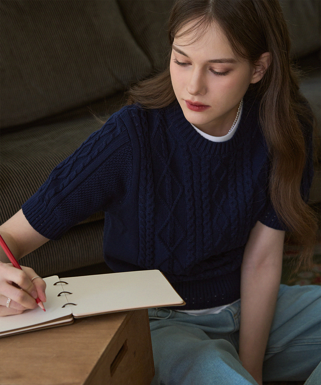 스카시 케이블 반팔 니트