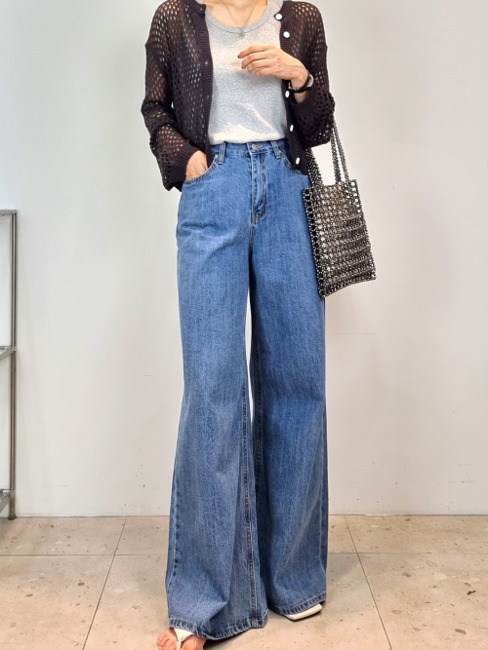 세미와이드청바지 통청바지 얇은청바지 연청와이드데님 여자통청 (블루스JEAN)