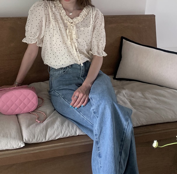 [도트리본반팔블라우스🎀] 여름 프릴 땡땡이 반팔 블라우스 소소