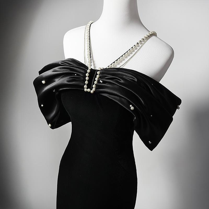 블랙 큐빅 비즈 오프 숄더 피쉬테일 이브닝 공연 무대 생일 행사 주최 퍼포먼스 롱 드레스