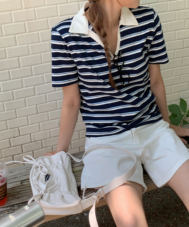 뉴코어 스트라이프 반팔 카라 티셔츠