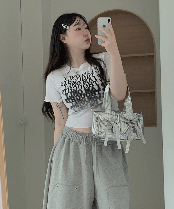 #12256 레터링 라운드 물결 슬림핏 크롭 반팔t : 3color