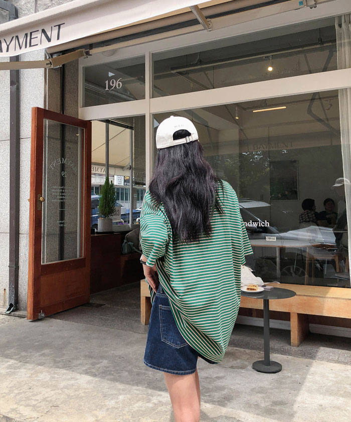[2천장판매] 어도어 스트라이프 반팔 티셔츠 (4color)