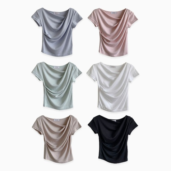 [자체제작🫧/허리쏘옥/여름ver] 한끗 여리여리 드레이프 크롭 반팔 티셔츠
