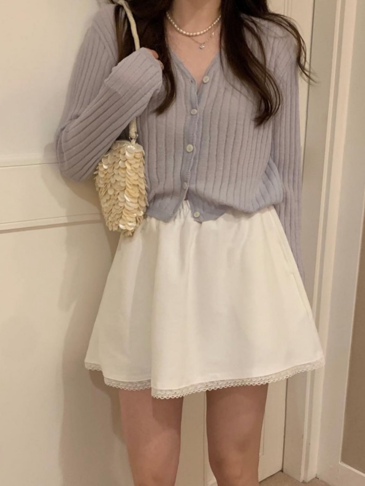 pyt 프리티영띵 설레임 린넨 골지 프릴 물결 브이넥 니트 가디건 3color