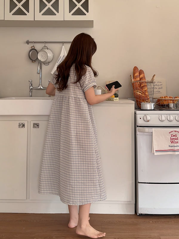 [시어서커여름인기🌊] H.made✔ 레니 체크 반팔 여름 지짐이 잠옷 여성 원피스 투피스 파자마 세트 2color 2type 직진배송