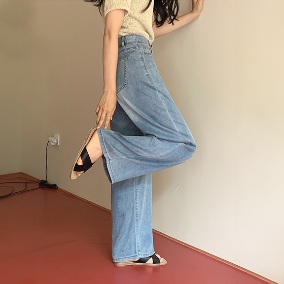 [오늘출발][시원한텐셀데님/밴딩청바지] 쿨링밴딩롱와이드 텐셀 데님팬츠 (허리밴딩,사방스판,썸머데님,여름청바지,YKK,기장별),휴양지룩