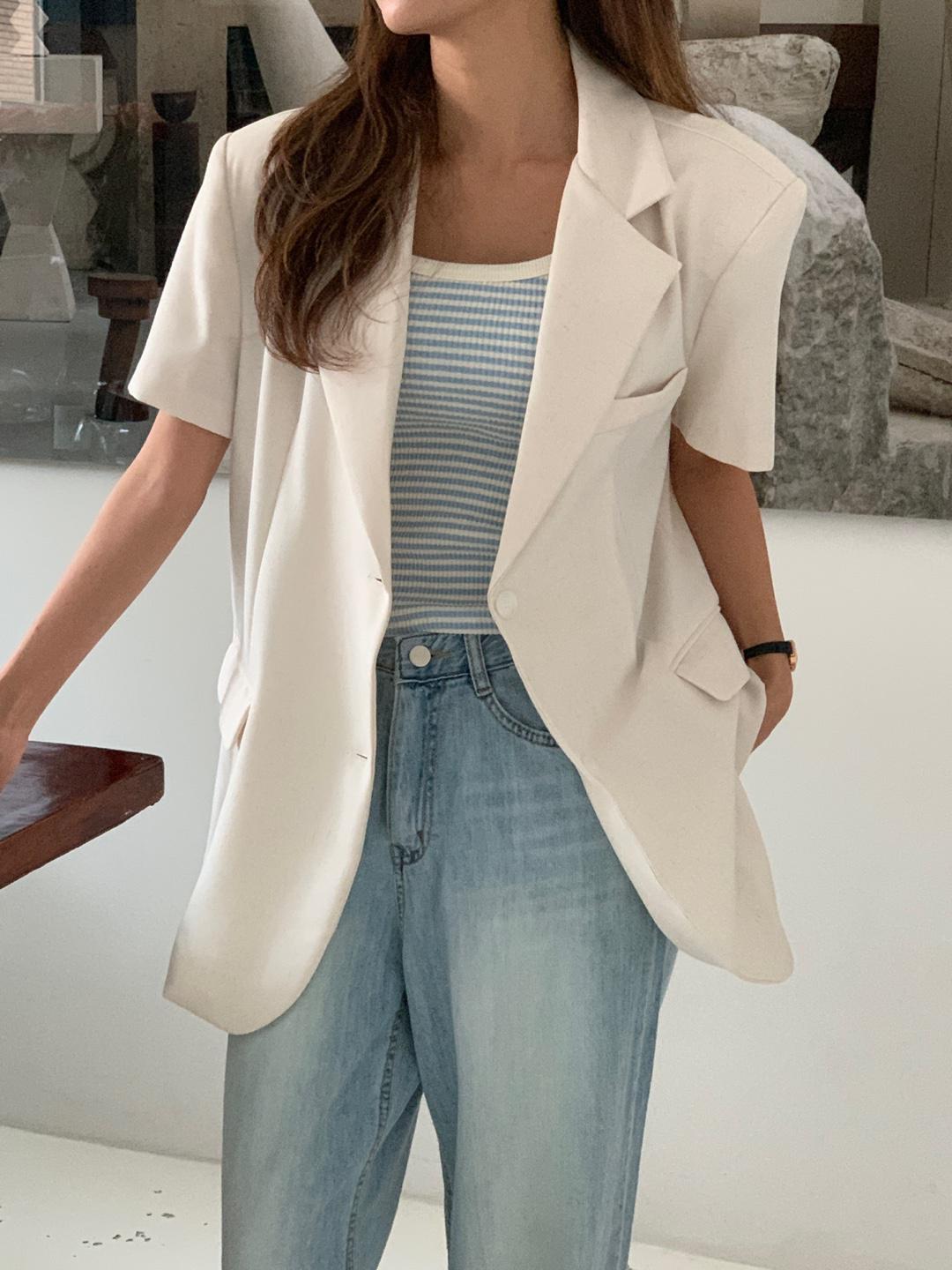 (여름신상) 에디 자켓 / 루즈핏 오버핏 투버튼 여름 반팔 자켓 블레이저 (3color)