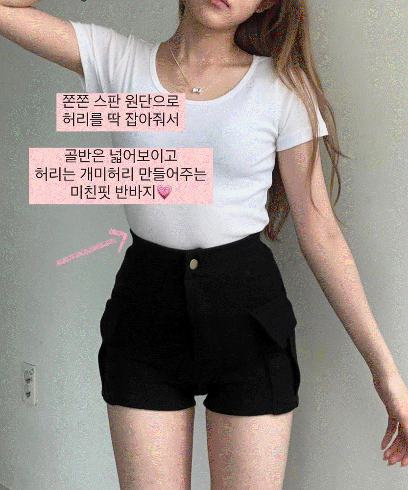 [S/M][무골반도 골반뽕 효과 주는] 쫀쫀 볼륨업 스판 카고 반바지