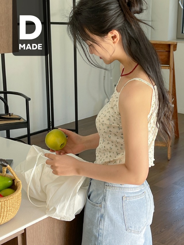[4천장돌파][MADE] 빅사이즈 55-99 날날이 빈티지 플라워 세미 크롭 골지 끈 나시