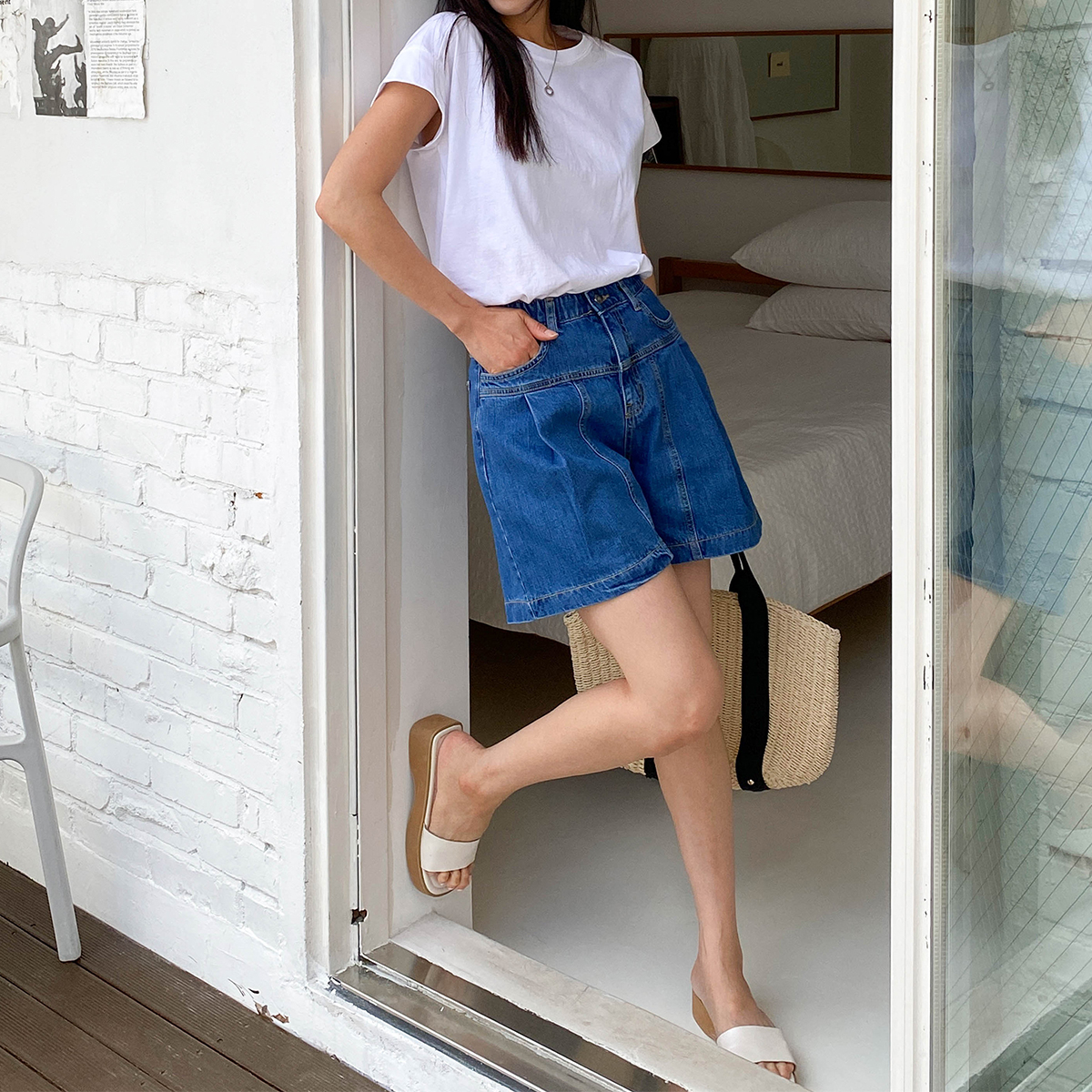 루네리 밴딩 핀턱 절개 스티치 청반바지