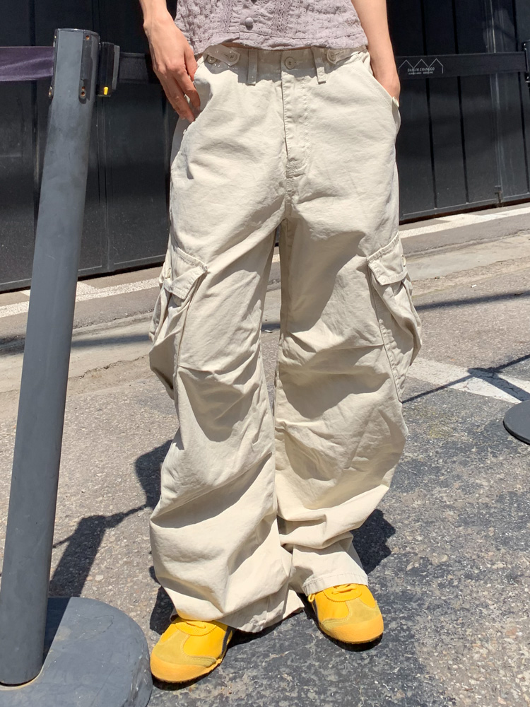 [MD PICK!] 아썸 버튼 카고 여름 면 와이드 팬츠 3color