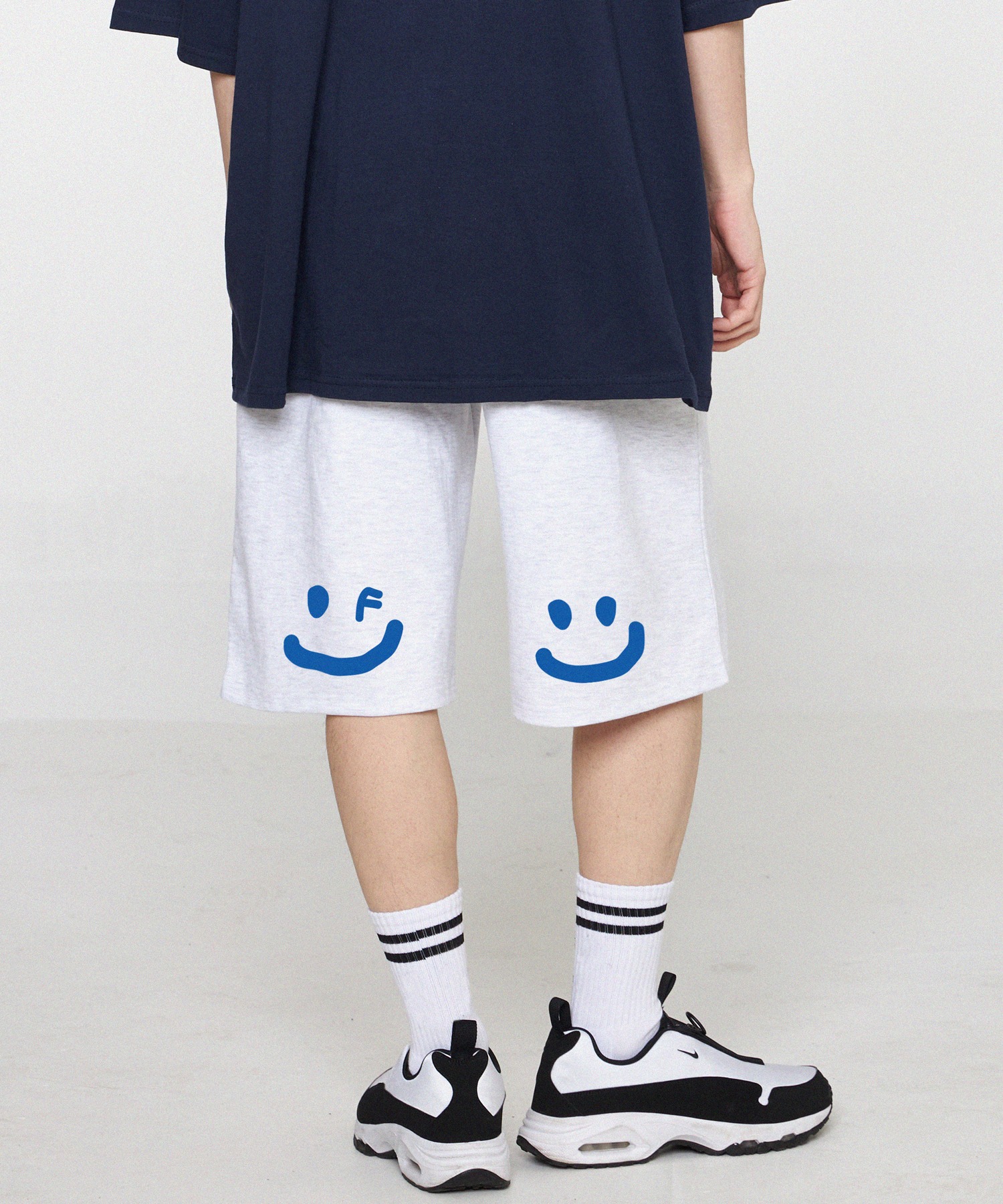 [UNISEX]백 드로잉스마일 버뮤다 트레이닝 반바지_멜란지화이트