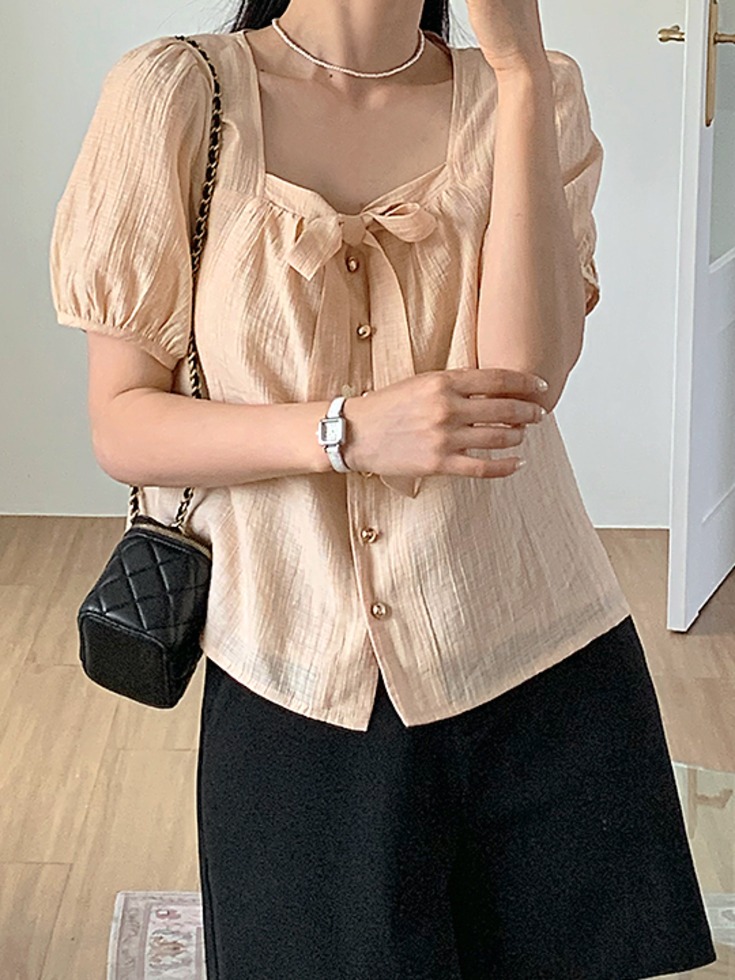 [44-120] 위티덴디 링클 린넨 퍼프 리본 블라우스 ( 여름-데일리룩-데이트룩-휴양지룩-바캉스룩-피크닉룩-여행룩-페미닌룩-빅사이즈-120사이즈-자체제작-여리한-러블리-사랑스러운-통통녀-반팔블라우스 )