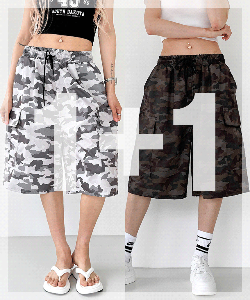 🎁1+1🎁[버뮤다] 카모 와이드 카고반바지 스타일예쁜 6부 카고버뮤다팬츠 오버핏 남녀공용