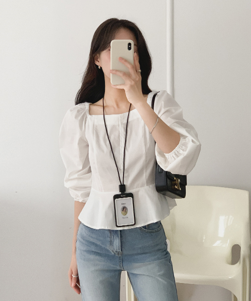 [단독][⭐3천장] MADE 롤링 퍼프 하트넥 프릴 블라우스(반팔/긴팔)