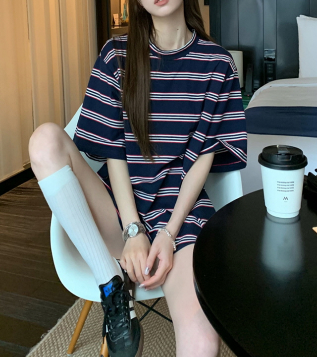 수입여성의류 명품스타일 여자옷 스트라이프 반팔 티셔츠