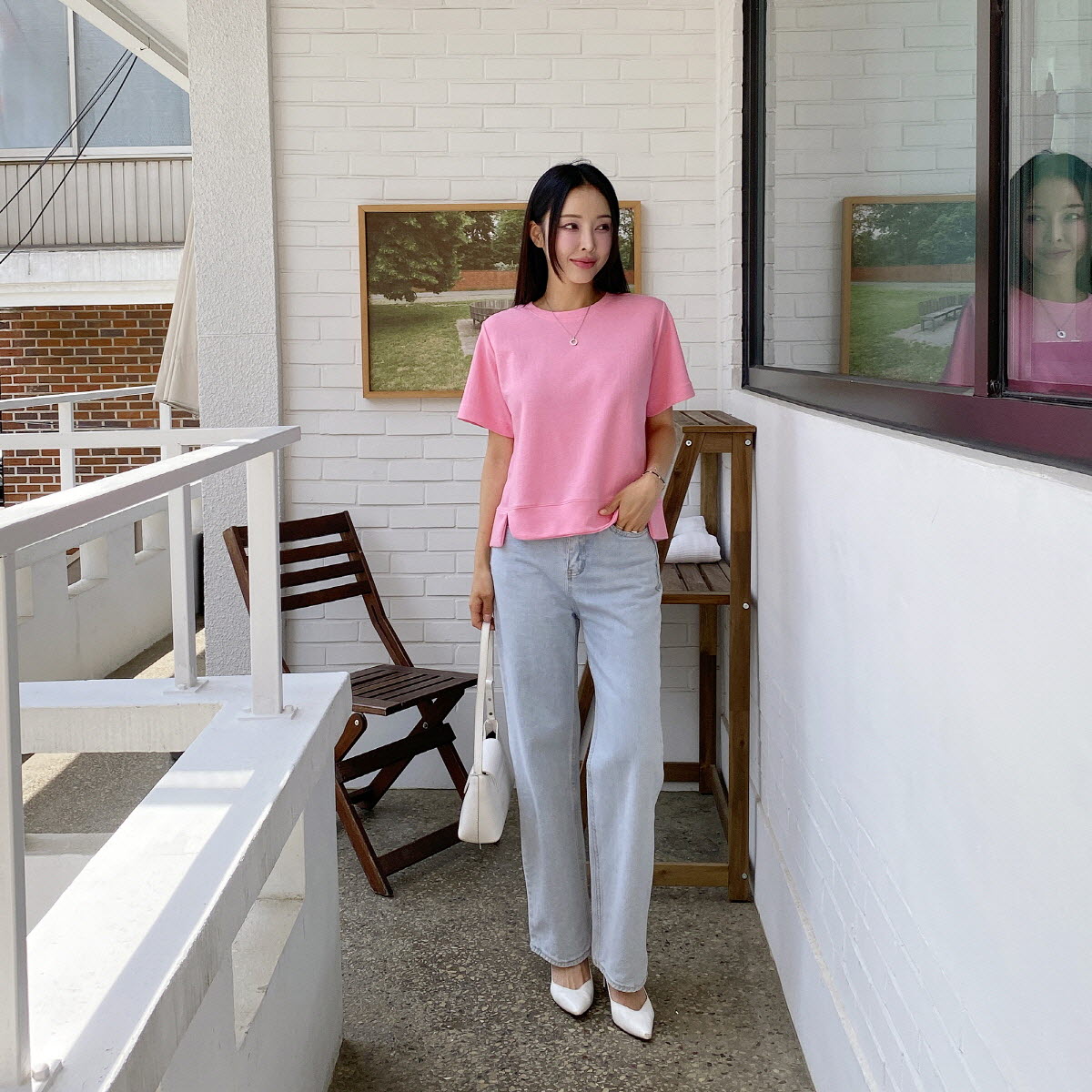 다루빈 라운드넥 사이드 절개 반팔 티셔츠