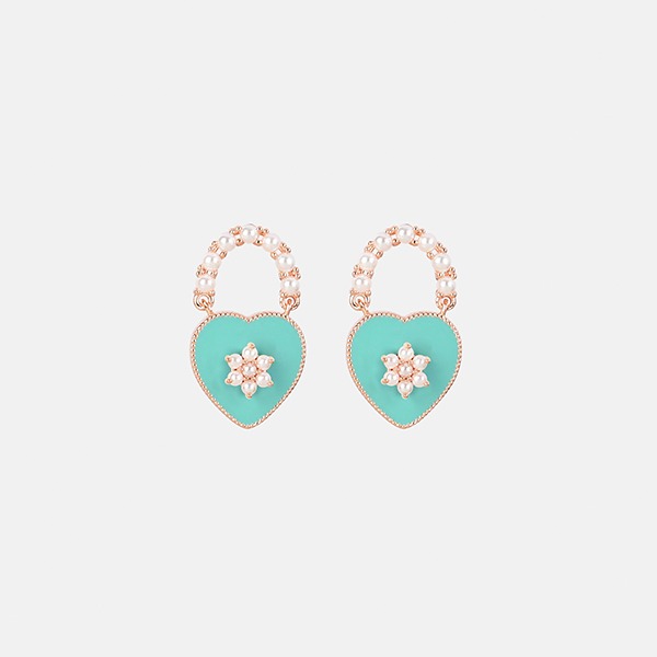 다이애나 컬러 하트 앤 진주 포인트 귀걸이