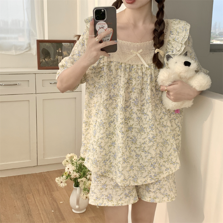 [44-120] 너무 예쁜 빅사이즈 잠옷 플로랄 레이스 여름 반팔 파자마