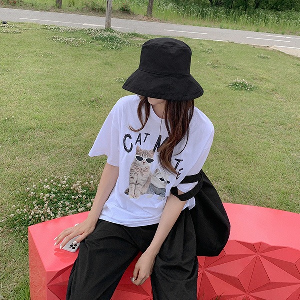 [키큰여자]모캐*캣프린팅반팔티셔츠