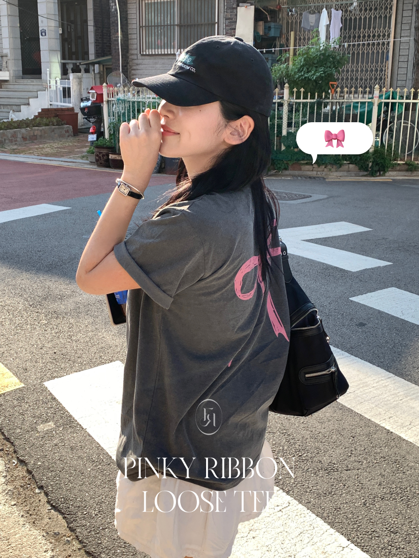 [키치/러블리]핑키 리본 프린팅 반팔티*아이 당일발송