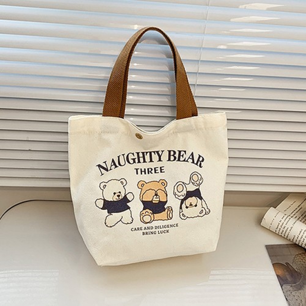 베어 미니 캔버스백 에코백 토트백 도시락가방 신발주머니