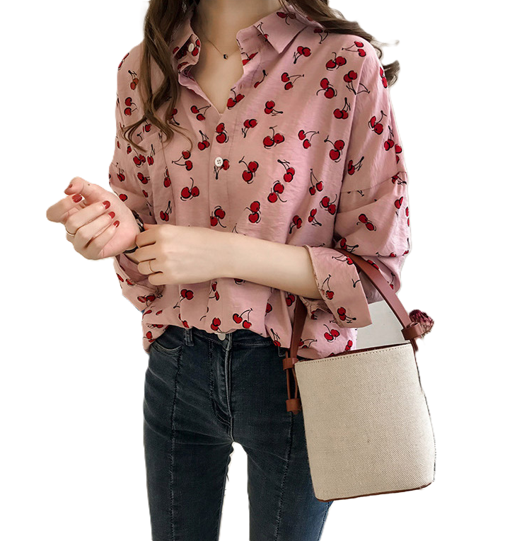 [2컬러] 체리블라우스 포켓블라우스 긴팔블라우스 여성 패턴블라우스 데일리 러블리블라우스 셔츠블라우스 귀여운 체리 블라우스 여성블라우스 여자블라우스